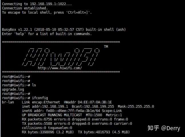新建ssh连接,并输入开发者模式中指定的ssh配置信息登录到路由器后台。