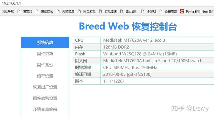 breed为OpenWrt玩家必备神器,uboot自带web 服务器,支持uboot阶段通过web升级、备份固件,并且可以通过reset键一键进入uboot模式,当然由于开发板硬件差异,gpio管脚定义不同,需要找到开发板对应的breed版本,否则不能通过reset按键进入uboot模式。