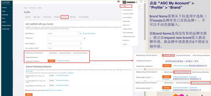 注意:要进入LazMall的第一步是给行业小二审核品牌,所有达标的卖家都能申请LazMall,但是一定要是行业小二审核过的品牌,国家站才会审批。
